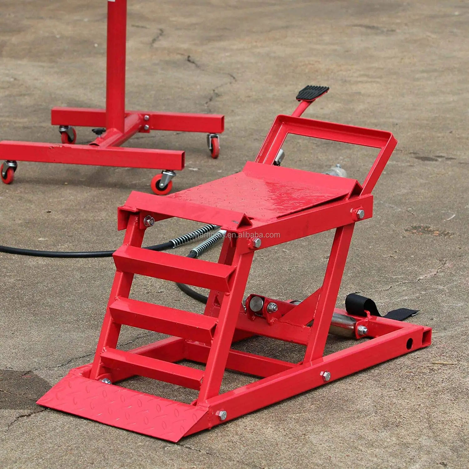 | Operated by a hydraulic foot action pump. |
