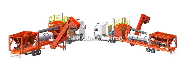 SINOSUN - Trailer type Continuous Mix Asphalt Drum Mix Plant (capacity with 20t/h)