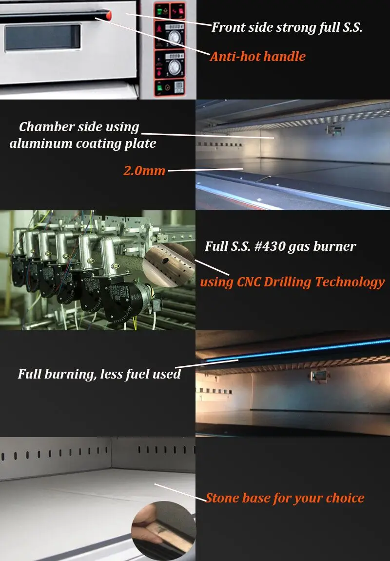 -HLY series gas oven adapt stainless steel gas burner, with CNC drilling technology.
