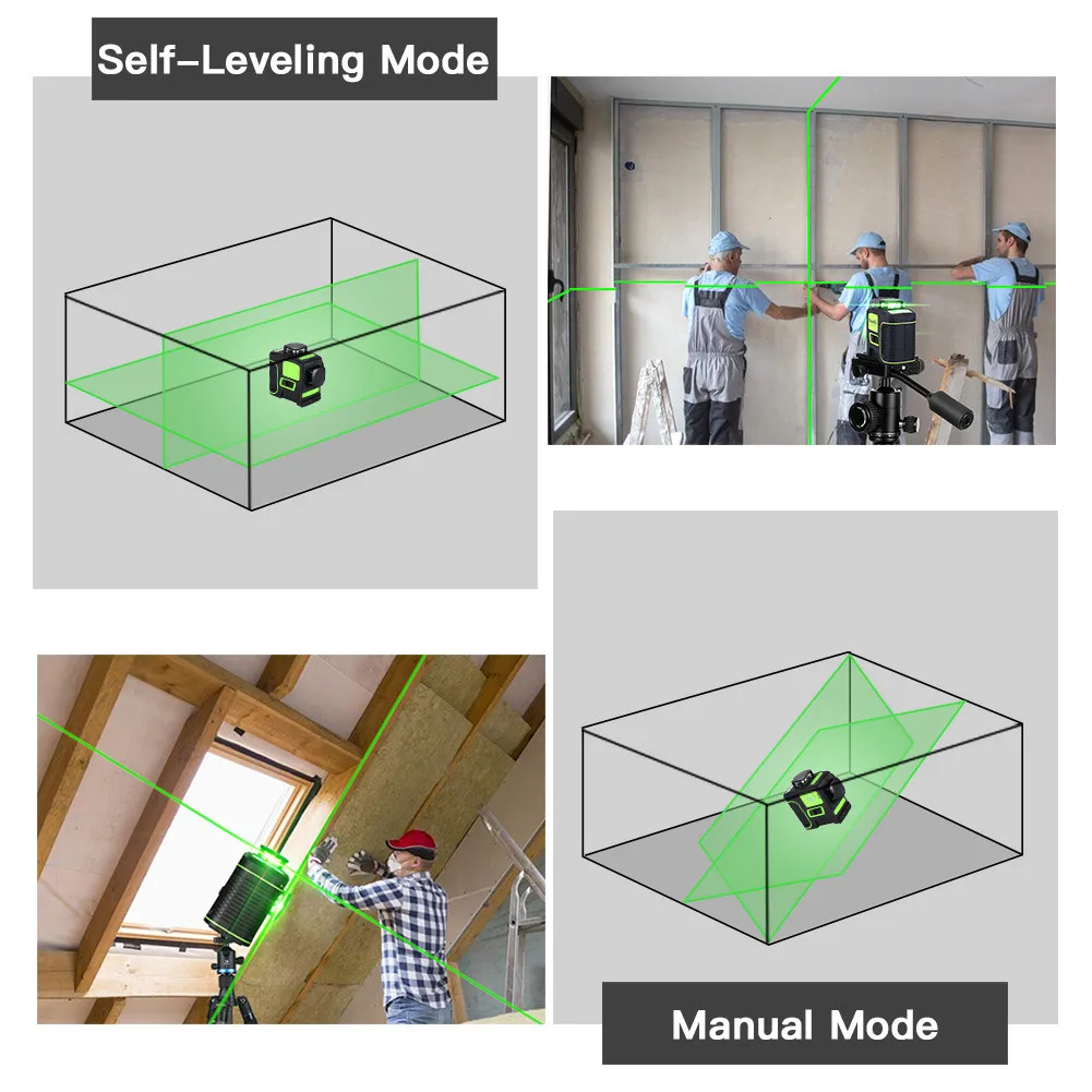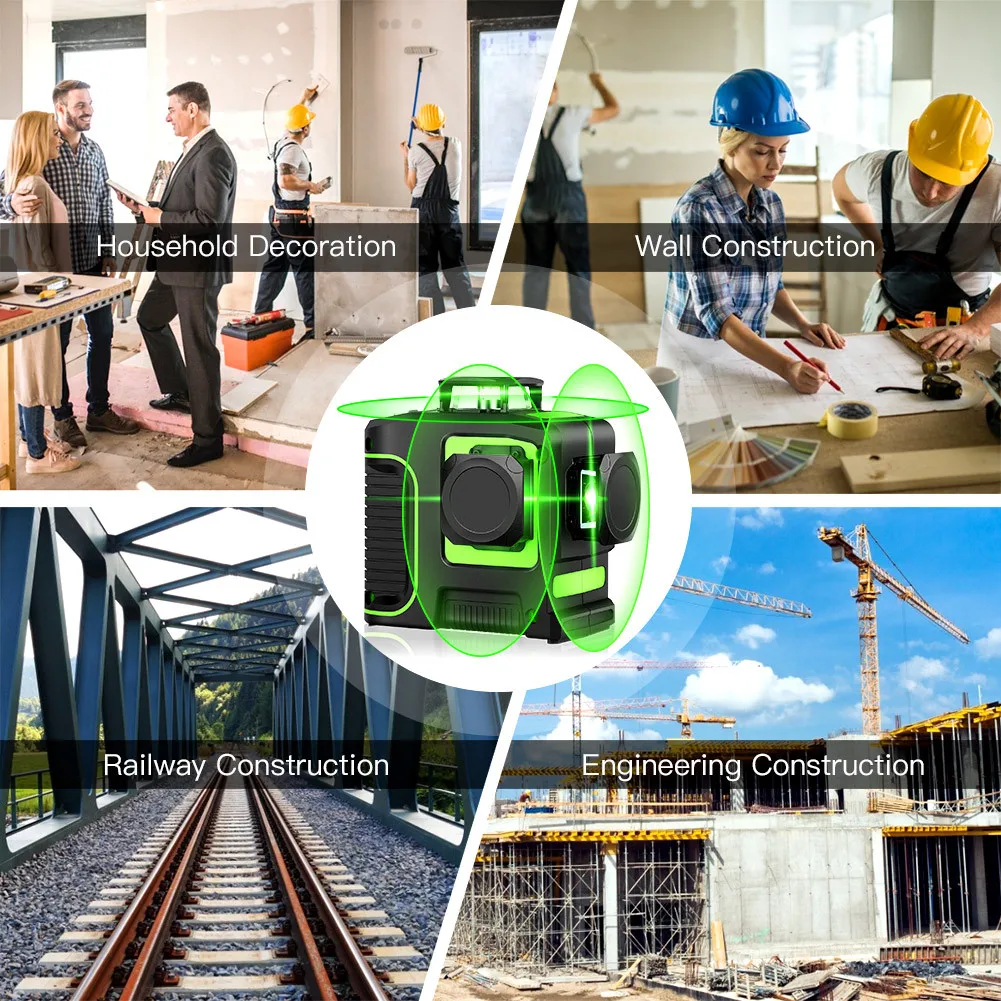 Borka 12 multi lines nivel laser green beam 360 degree cross line 3d laser level tools