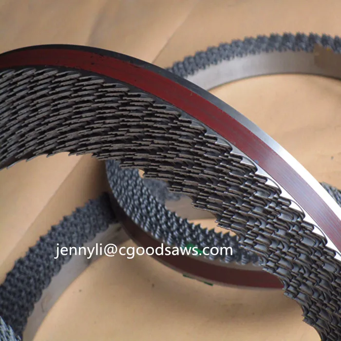 | Wide bandsaw blade | Application: Wide bandsaw machine,Cutting massive natural wood Tooth Shape: KV, NV, PV, PVI | ||