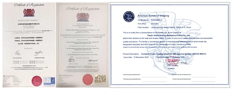 Provide ISO 9001 2008,ABS certificates for ISO corner casting |