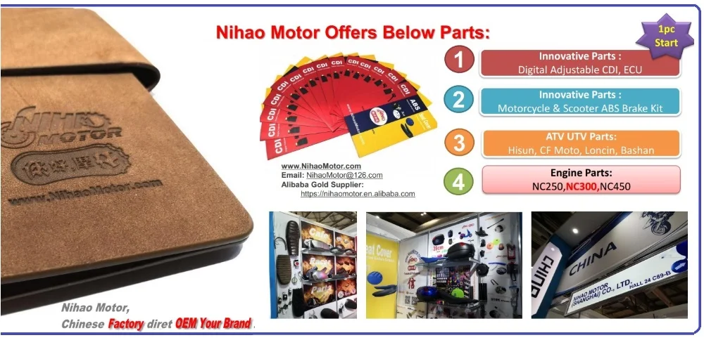 Not only to make Chinese motorcycle parts, Chinese scooter parts, motocross,dirtbike,euduro parts,such as CDI limited,25km,45km CDI,GY6,139QMB,157QMJ,CG,CB,NC by Nihao Motor for the brand including, BAOTIAN, BASHAN, BENZHOU, CFMOTOR, CHARMING, DAYANG, DINLI, FUXIN, GEELY, GILERA, HANGLONG, HAOJIN, HAOJUE, HONGZHOU, HUATIAN, JIAJUE, JIANSHE, JINLUN, JMSTAR, JONWAY, KAITONG, KEEWAY, KINROAD, KYMCO, LIFAN, LINGBEN, LINGTIAN, LINHAI, LINTEX, LONCIN, LONGJIA, MAWI, MEIDUO, MOTORRO, QINGQI, RHON, RIEJU, SACHS, SHINERAY, SKYGO, SUKIDA, TAOTAO, VESPA, VONROAD, WANGYE, WONJAN, XINGYUE, XINLING, XINTIAN, YIBEN, YINGANG, ZHONGYU, ZNEN, ZONGSHEN,HISUN,RATO,JIAJUE,RIYA,FYM,