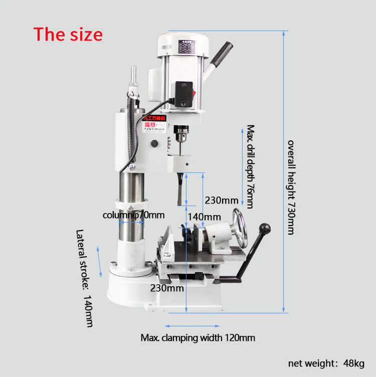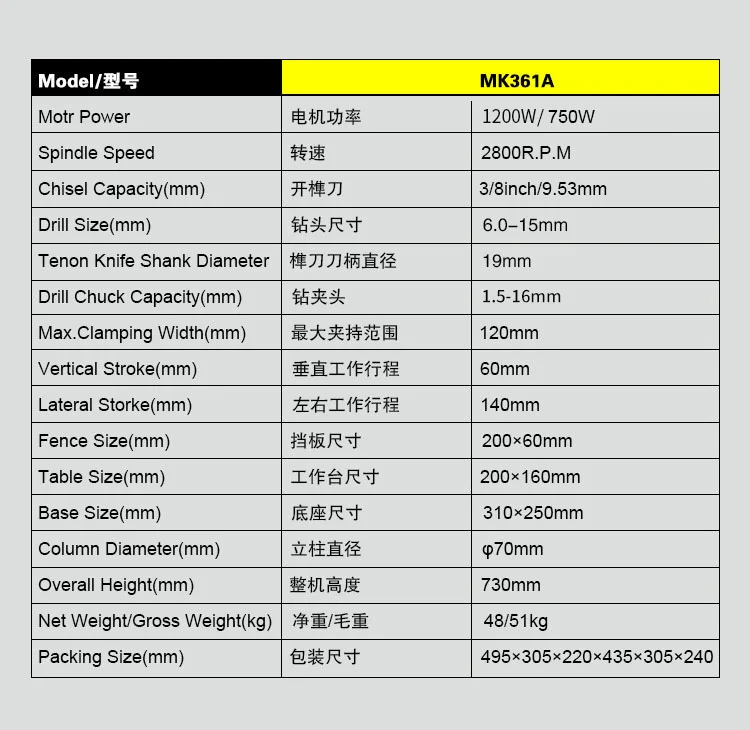| Name: | 750W woodworking mortise and tenon machine; | Base size: | 310X250; |