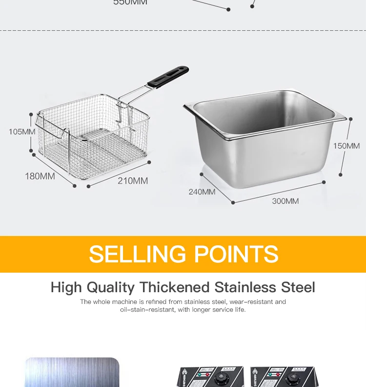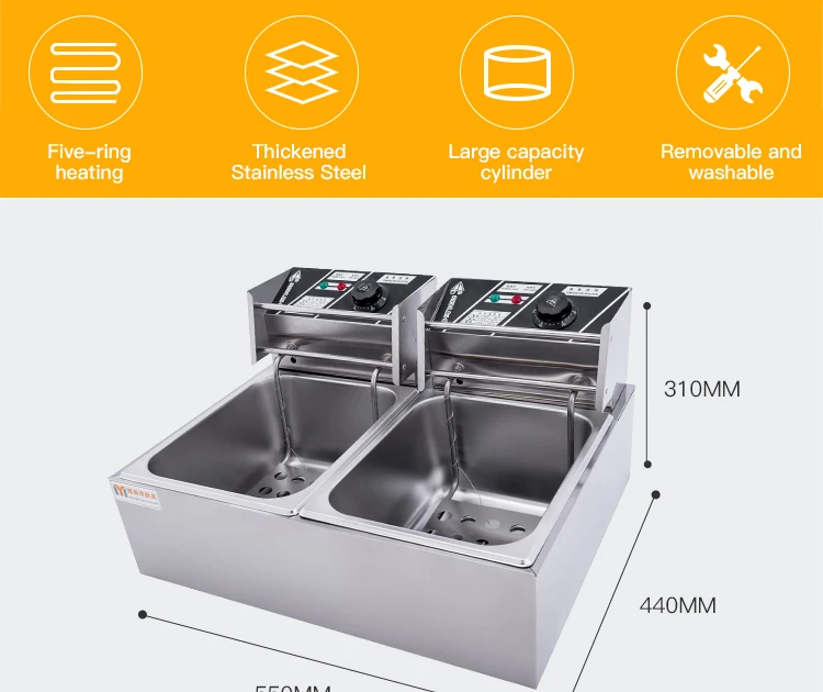 | Name | 12 Liter 2 Tank Stainless Steel Electric Deep Fryer with Double Basket Square Large Countertop Temperature Control |