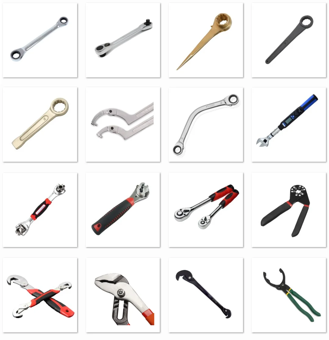Tools: Thread tap & die, Screwdriver & bits, Wrench & key, Drill bits, Cutting tools, Woodworking router bis & clamps, File, Punch tools, etc.