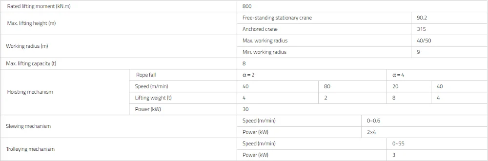 | Rated Lifting Moment: | 800 t.m; | Application: | construction project, construction machinery; |