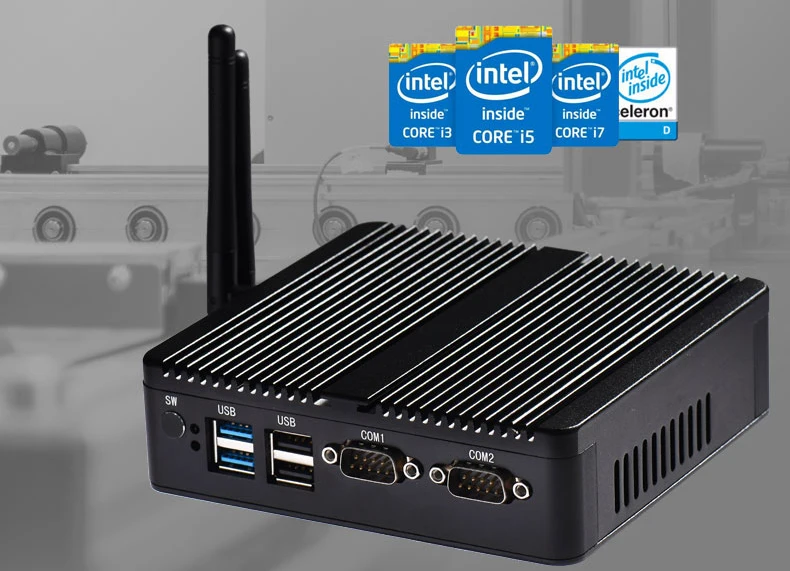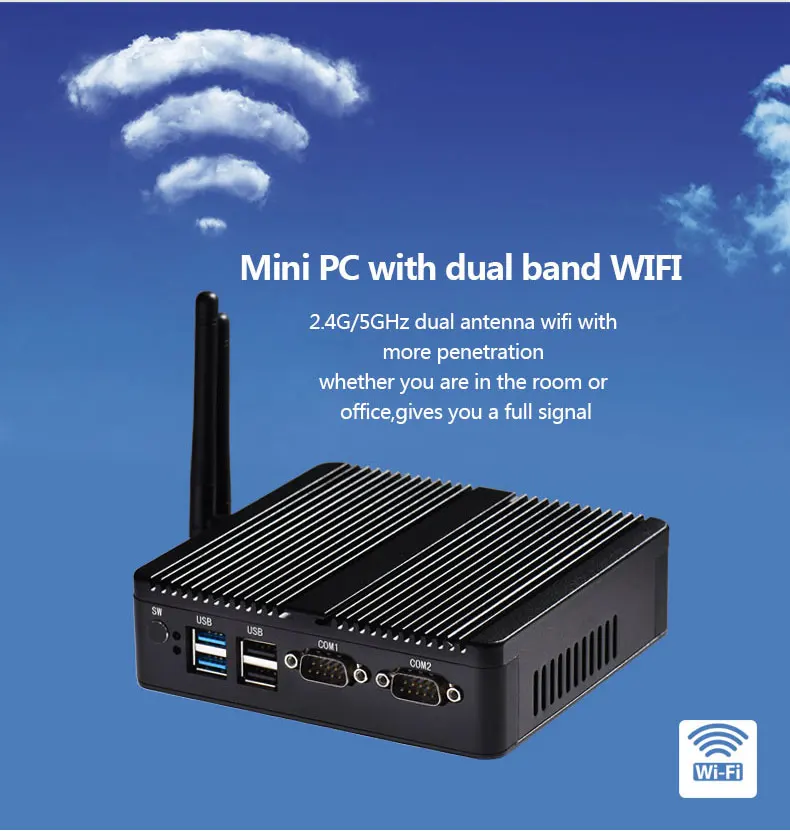 Cheap fanless mini pc J1900 i3 i5 i7 300M WIFI 1000M dual Lan rs232 12v barebone system