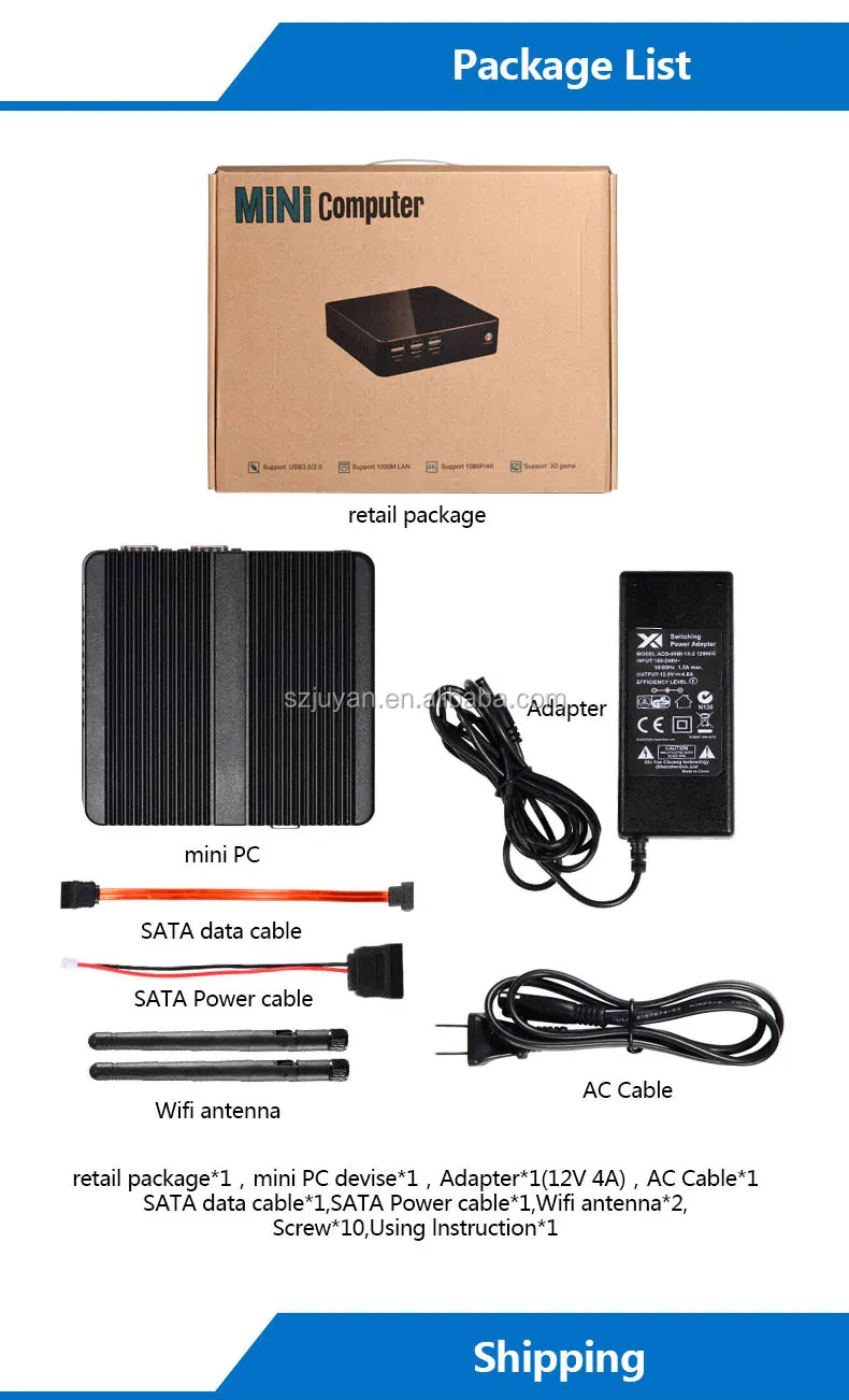 | Package Type: | >> OEM item in retail box: 33.5*24*7.5cm >> 8pcs per package carton; | Core: | quad core mini pc; |