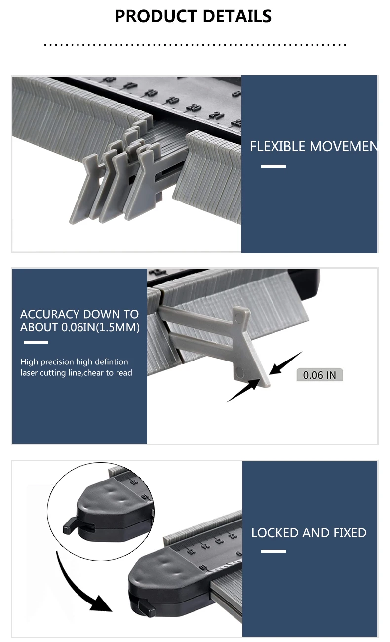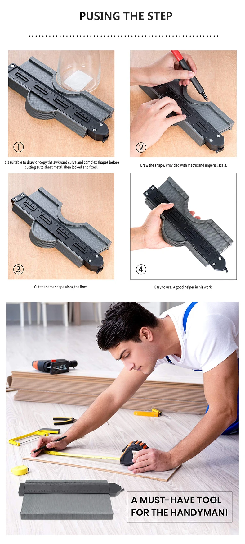 This profile gauge can be used for pipes, tiles, laminates, carpets, size inspection, molding, body, woodworking, and various styling tools.etc. It is ideal for copying irregular shapes and contours, for templates with odd-shaped corners to properly cut patterns.