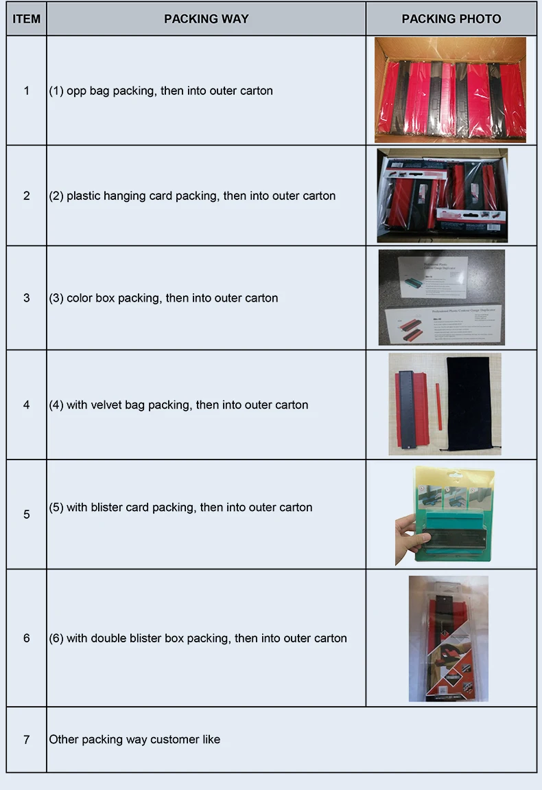 | Item Name: | Contour Gauge; | Color: | green, red, blue or Customized; |