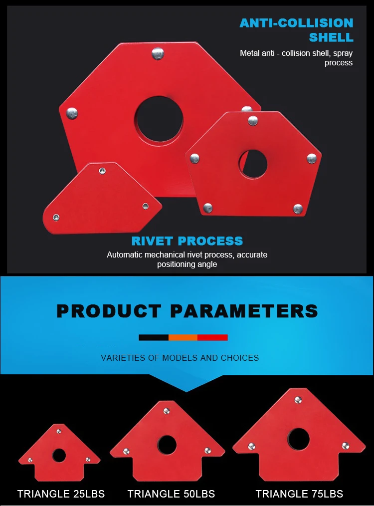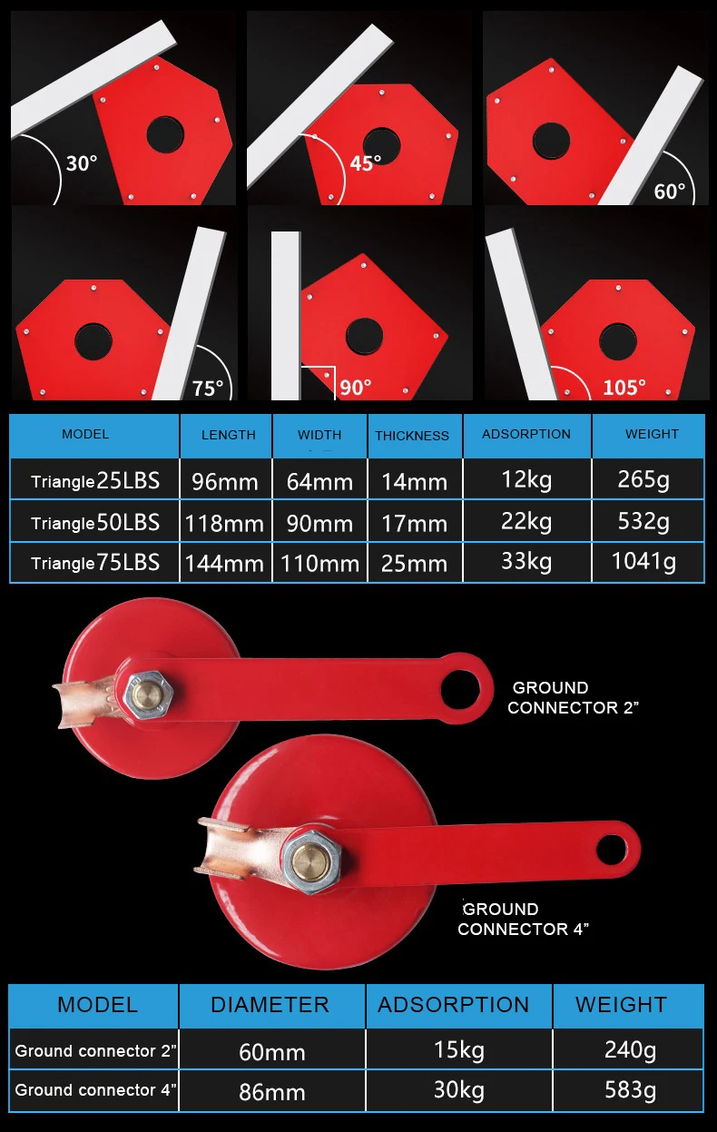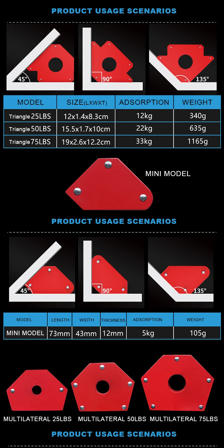 Welding angle magnet makes positioning easier, more convenient and safer to use.Suitable to welding fix the inside square corner of various magnetic material.