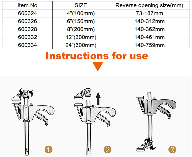 | Product name: | Quick ratchet bar clamp; | Packaging Detail: | packde by hang card; |