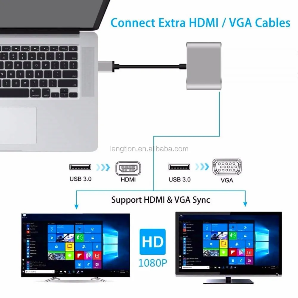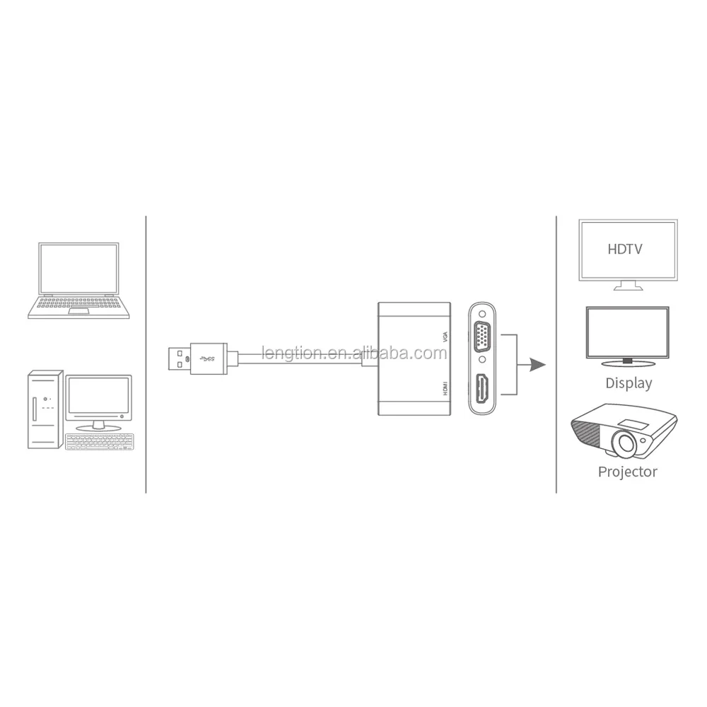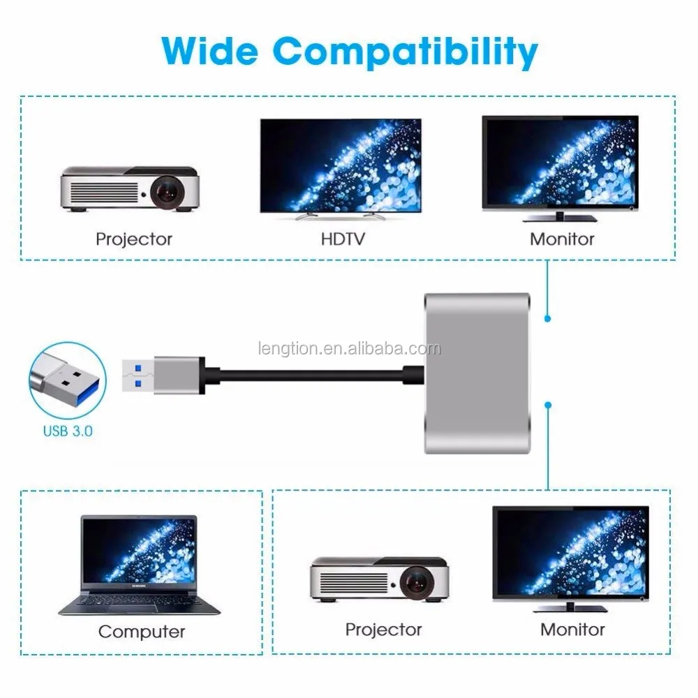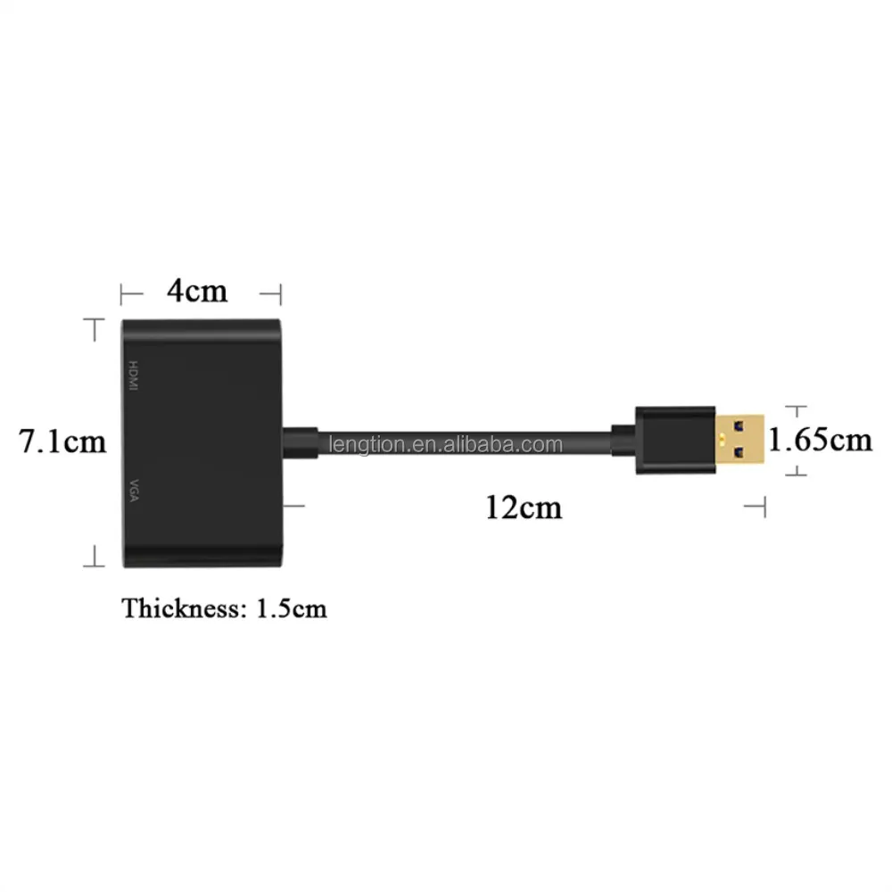 This USB3.0 to HDMI and VGAallows you to connect from your USB3.0 Windows Computers or Graphic Card to your external Displays with HDMI and VGA Female Port(Including HDTV,Projectors,Monitors) by a HDMI or VGA cable.HDMI and VGA Can be Output at the same time with the same display.