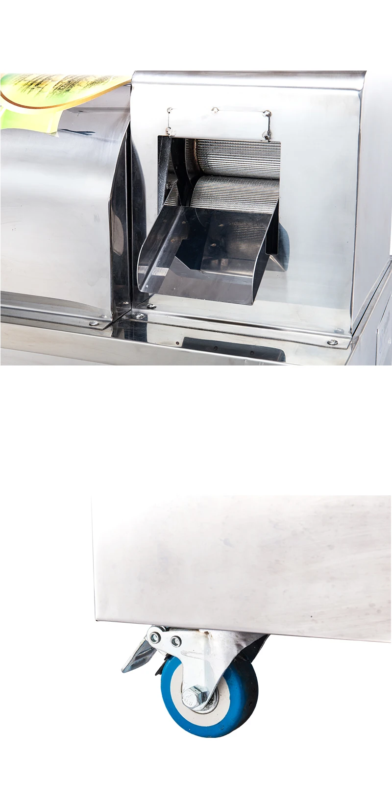 Features of cane juicer:The whole machine is made of food-grade stainless steel, and the new four-roller design makes hawthorn juice separation more thorough. It adopts a fully closed structure and can be built with bagasse barrel to ensure that the residue juice does not leak out and is safe, clean and hygienic. The design of gear reducer at the driving part and the shock-proof device can greatly reduce the noise during the operation of the machine. |