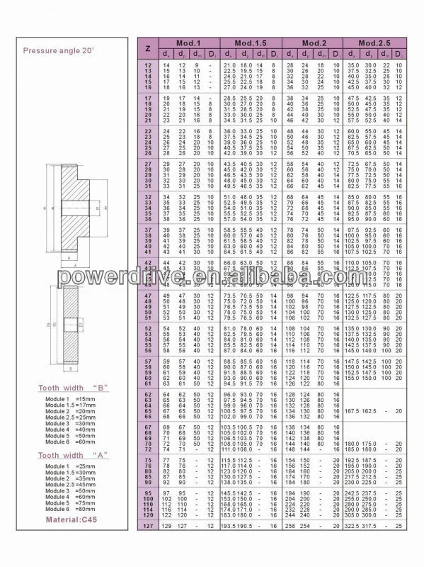Spur Gear: M1, M1.5, M2, M2.5, M3, M4, M5, M6