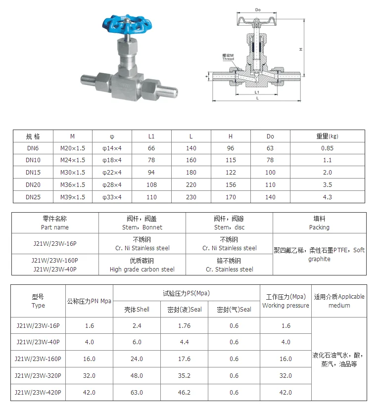 | Body material: | SS316; | pressure: | 6.4~32.0MPa; |