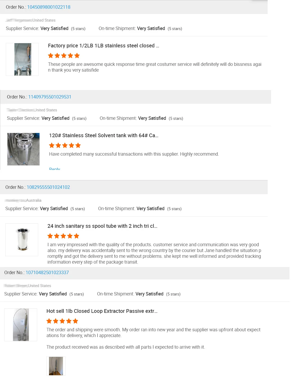 The stainless steel material column, extractor vessels,solvent tanks are customized according to client's drawings or designs.Our experienced engineer can provide professinal suggestions.Water pressure test at least 250PSI before shipping.