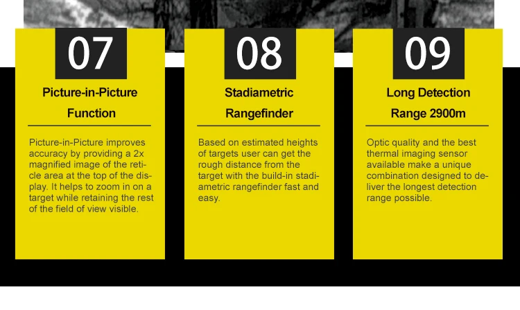 The Sight series are embedded with IRay independently developed high performance Vox detector which allows you to get high detailed thermal images, it will be much simpler to search targets in darkness. The Sight series has excellent performance in critical temperature range.