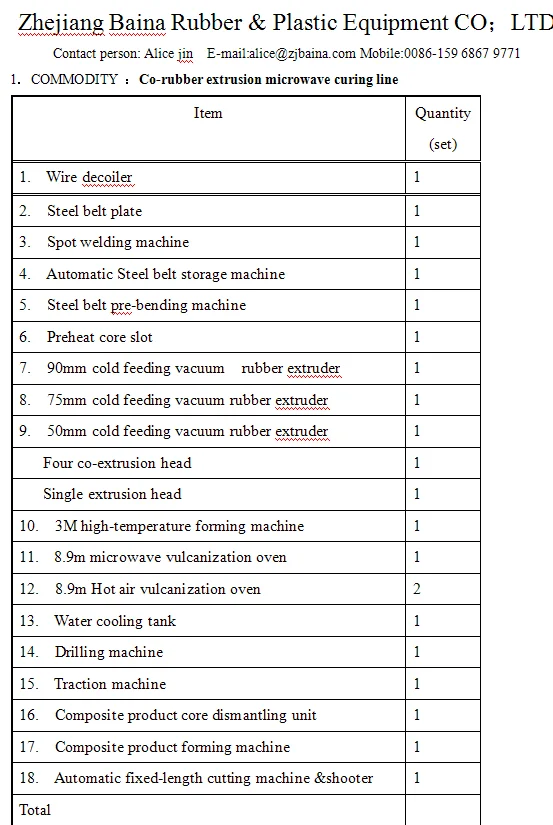 1. COMMODITY : Rubber extrusion microwave curing production line: