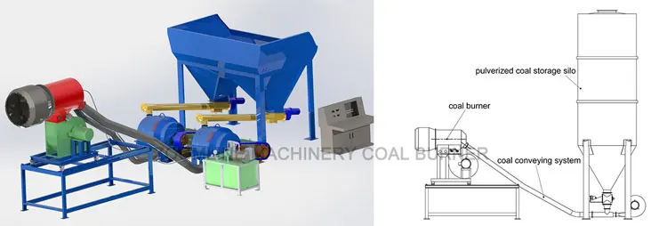 This type of coal burner is mainly used in asphalt mixing plant, boiler and dryer.