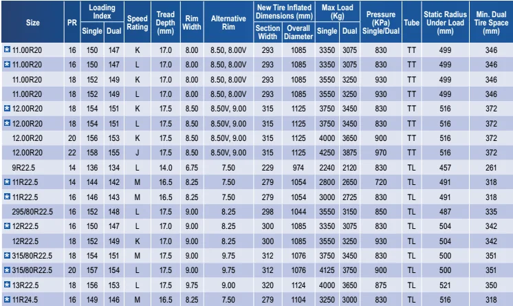 4. Complete range of TBR tire sizes