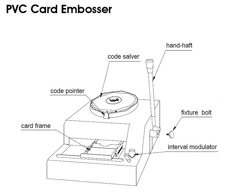 Its function is to extrude protruding or receding characters to make PVC card with identifiability and uniqueness.