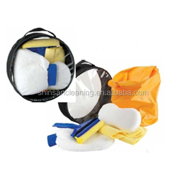 1.car care kit , combinate microfiber wash sponge ,mini squeegee,duster,tyre brush ,PU coated cloth,carwash chemical,microfiber towel