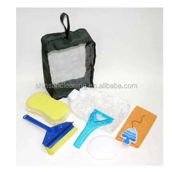 Component : mini squeegee,microfiber towel,microfiber wash sponge,PU coated cloth,carwash chemical ,tyre brush