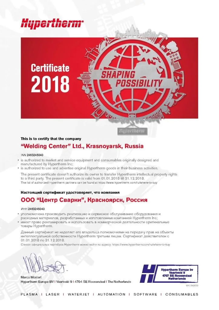 Welding Center, Ltd delivers the Powermax 30 Air, plasma cutting machine Hypertherm with a torch and a compressor to all cities of Russia, including Moscow, St. Petersburg, Chelyabinsk, Perm, Simferopol, Ulyanovsk, Kazan, Kaluga, Novosibirsk, Yekaterinburg, Nizhny Novgorod, Kaliningrad, Samara, Omsk, Ufa, Saratov, Krasnoyarsk, Vladivostok, Rostov-on-Don, Voronezh, Volgograd, Makhachkala , Grozny and others, as well as to Belarus, Kazakhstan, Armenia and Kyrgyzstan. Sale of the equipment is carried out on the basis of 100% payment if it is in stock and 50% prepayment when it is delivered under the order.