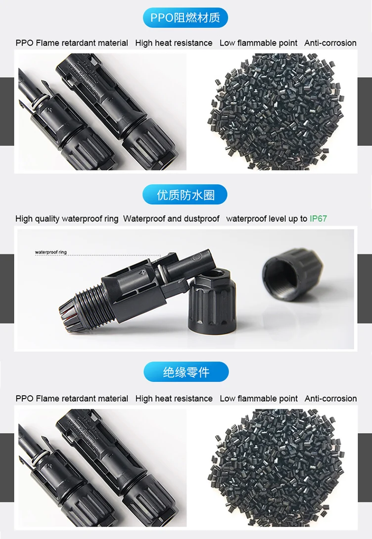 | Material: | PPO,Copper, Tin-Plated; | Name: | mc4 solar connector; |