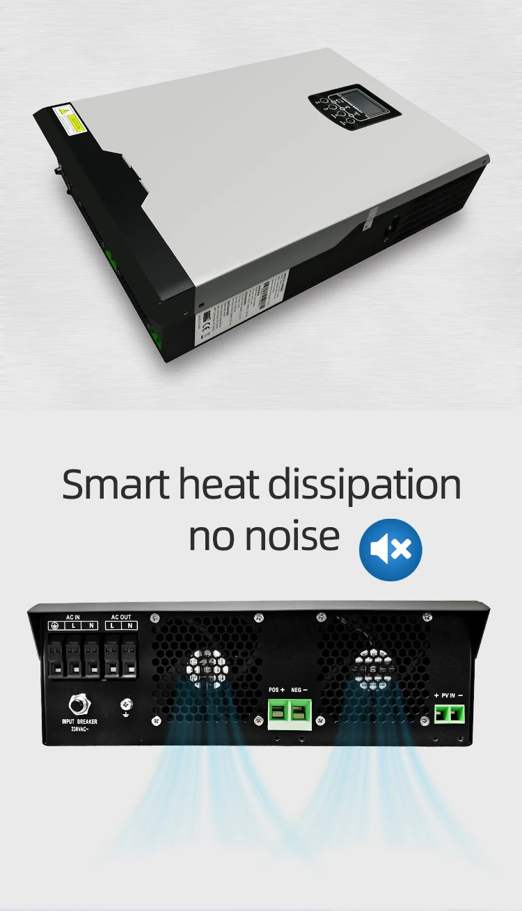 1.High effciency pure sine wave inverter(PF=1);Wide PV input range (12V dc -50V dc) 80A MPPT SCC;Intelligent 3stage 80A AC battery charger.