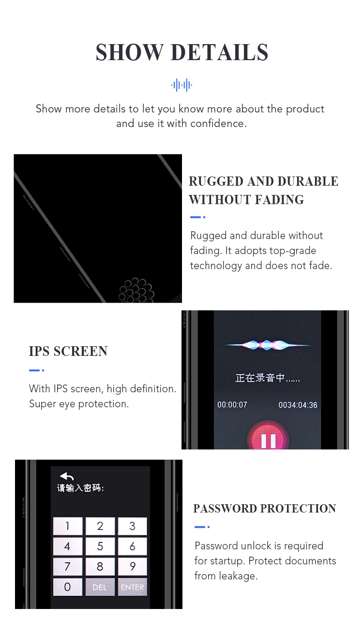 | Recording time: | 40h; | Brand Name: | OEM/ODM/RELEE; |