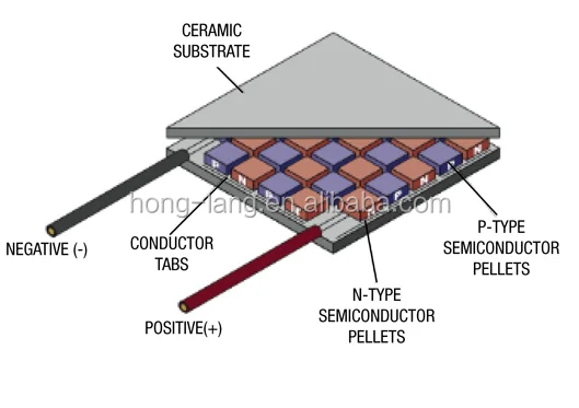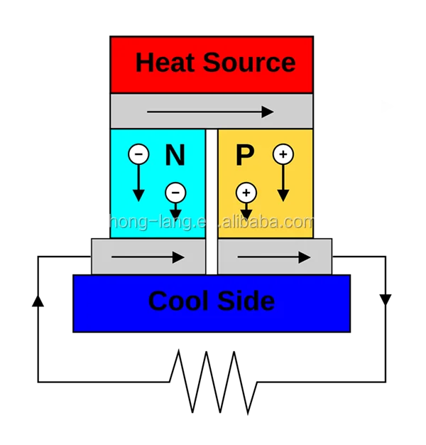 temperature difference on both ends of the semiconductor, and so on semiconductor created a dc voltage.Temperature