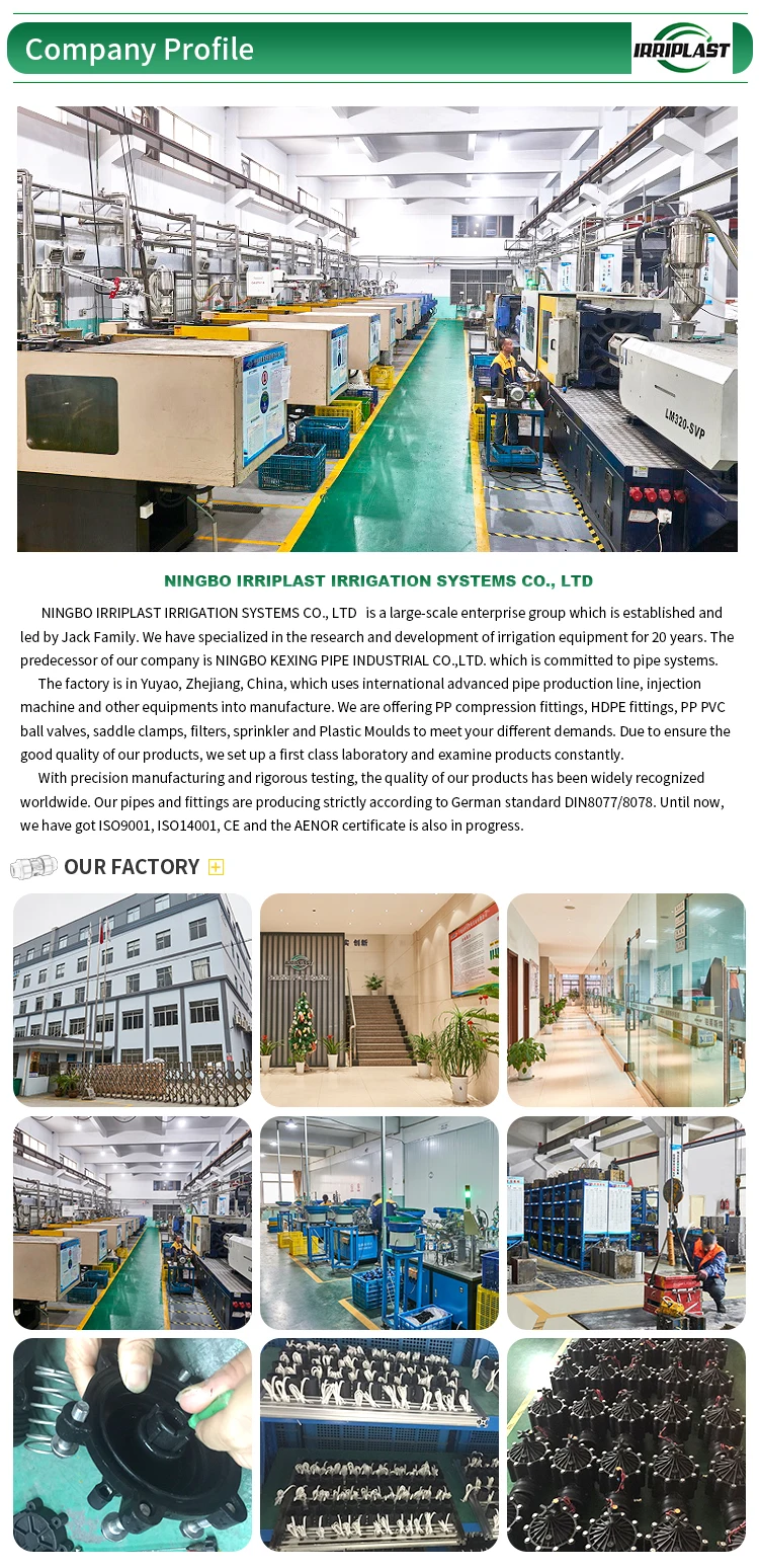 We are well-know manufacturer for irrigation system in the world with more than 20 years industry experience. The predecessor of our company is NINGBO KEXING PIPE INDUSTRIAL CO.,LTD. which is committed to pipe systems.