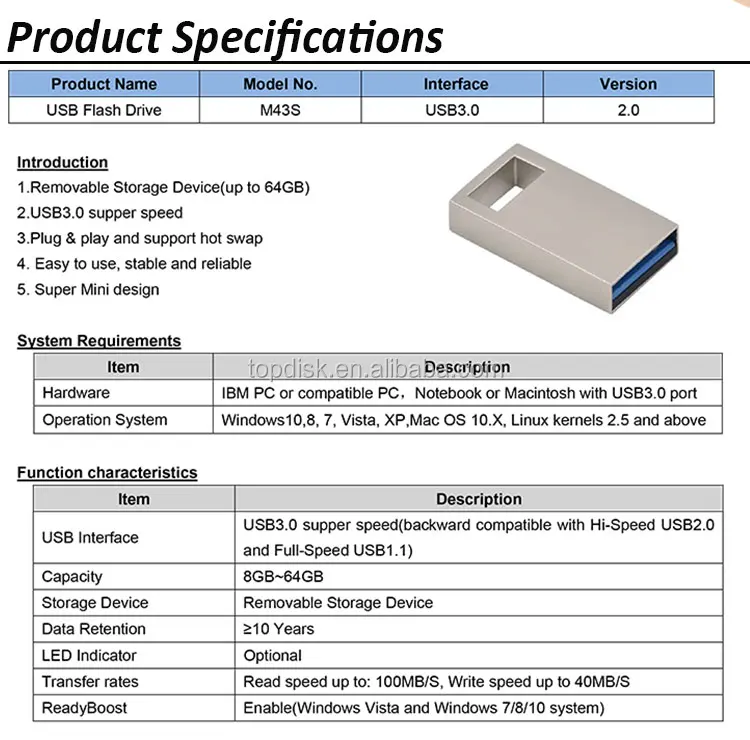 | Port: | Shenzhen; | Packaging Detail: | M43 Super Mini Metal 64 GB 3.0 Memory Stick USB Flash Memory Drive Flash Memory 1. The price is based on bulk package and 8GB,EXW HK. 2. Cutsomized packaging is available.; |