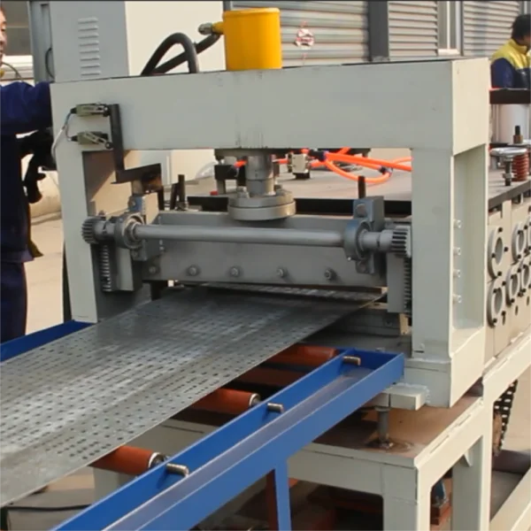 5. Hydraulic Cutting | Automatic cutting controlled by PLC. It adopts the hydraulic drive and automatic location to decide the dimension and cut the target products. The main machine automatically stops and then cutting. After the cutting, the main machine will automatically start. Material of blades: Cr 12 quenched HRC 58-60. Power supply : Hydraulic power Components: The system includes a set of hydraulic tank, a set of hydraulic oil pump, four hydraulic pipes and two sets of electromagnetism valves.