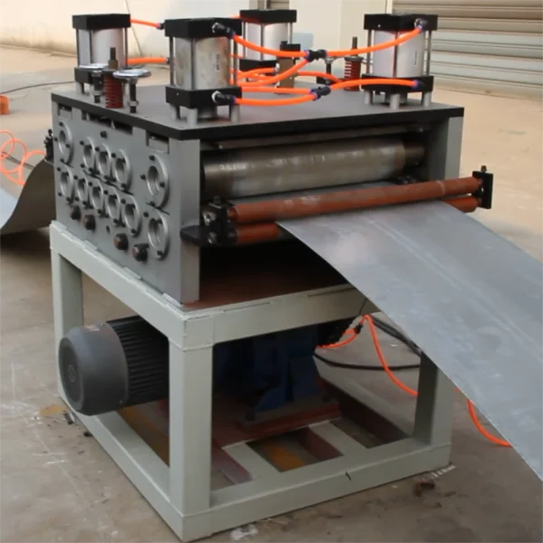 4. Cutting Feeder | The machine automatically stops when cutting. After the cutting, the machine will automatically start. Feeding Rollers: 7 rollers Diameter: 80 mm Feeding thickness: 0.3-1.5 mm Max feeding speed: 12 m/minute Drive type: Gear Motor power: 4 kw