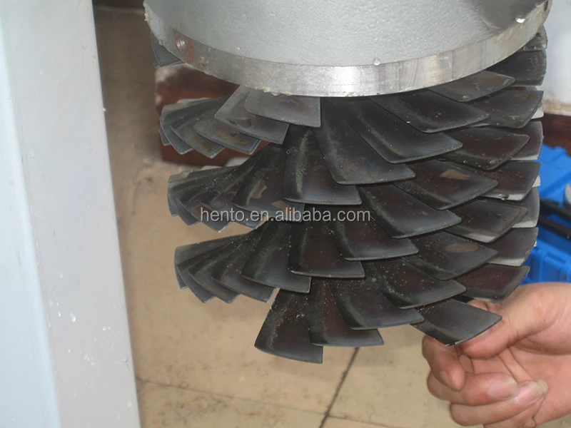 The knives are especially designed which have six cutting angles, and the machine is equipped with 10 layers of knives, each layer has 6 knives, we can get the different final products(paste or fragment) by adding or reducing the quantities of the knives. The parts contact with the food is made of stainless steel, it is easy to operate or clean.