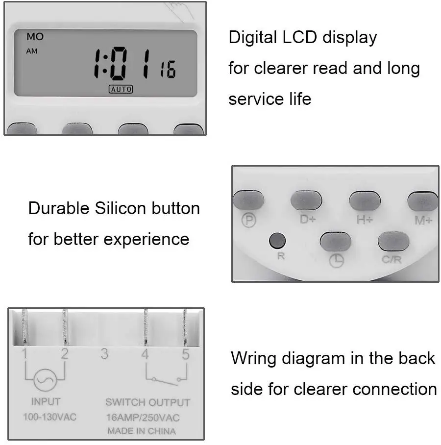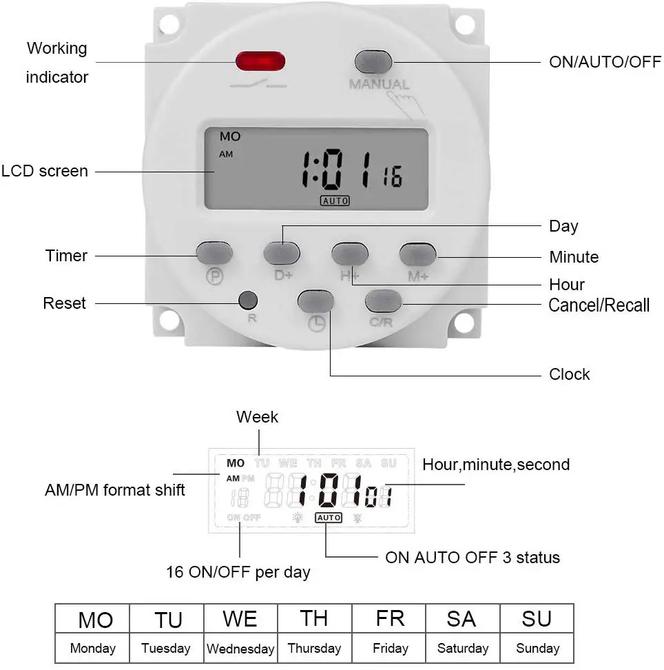 CN101 16A 220V Relay Digital LCD Power Programmable Timer Time Switch