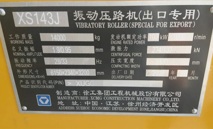 | Brand Name: | XCMG; | Exciting force: | 274/137 kN; |