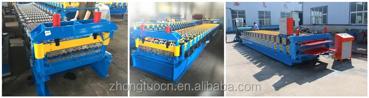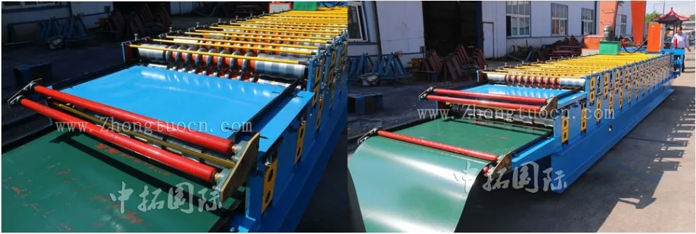 for this double layer metal sheets roofing machine, you can choose corrugated and trapezoid type, also can choose IBR and wave type,by this design, can save space and cost, but kindly note one thing: both layers cannot run at same time