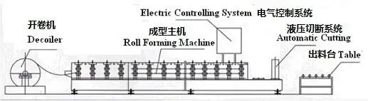 Uncoiling→Feeding material into machine→Roll forming→Measuring length→