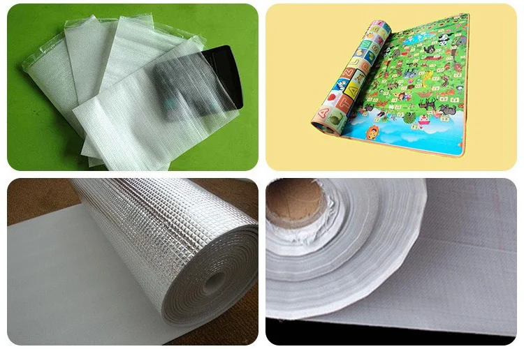 Typical applications are such as PE film to EPE foam sheet, aluminum foil to EPE foam sheet, PE film to kraft paper. Finished products would be anti-fouling, waterproof, wear-resisting, fold-resistant and anti-corrosion.