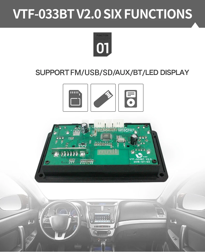 | Product type: | Bluetooth Mp3 Module; | Model Number: | VTF-033BT V2.0; |