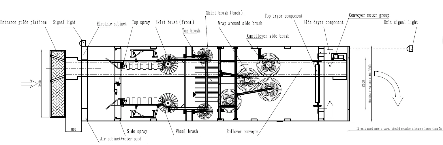 * People in and out of the washing machine, if there is a downhill, you need to reserve 4 meters platform in the washing machine Entry and Exit each ;