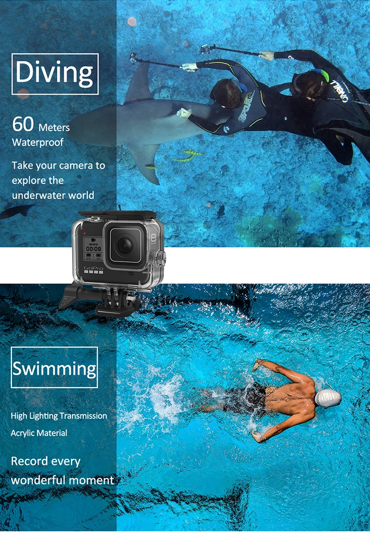 KingMa 60M Waterproof Case for GoPro Hero 8 Black Camera