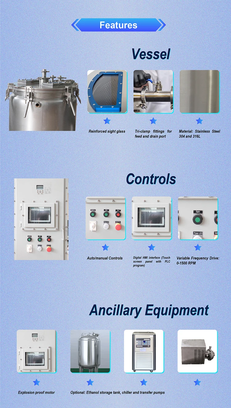 The YCE SERIES SOLVENT EXTRACTION CENTRIFUGE provides the ability to extract and target botanical compounds from diverse plant species. This unique extraction technology can isolate specific botanical compounds through programmable sequences, effectively targeting the desired separation.