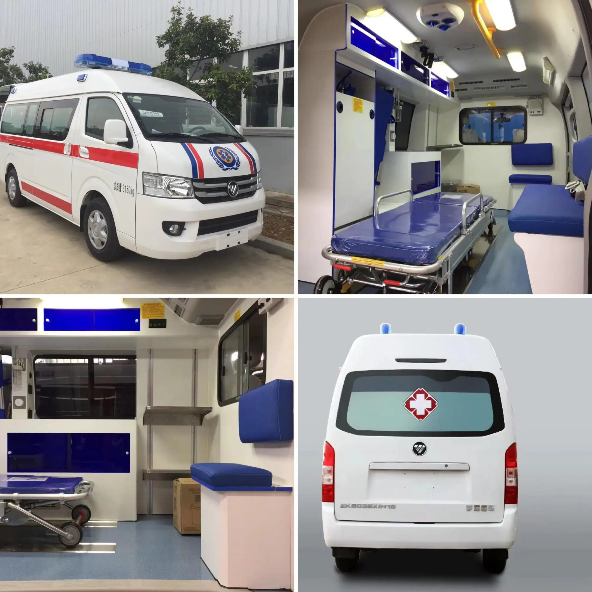 Basic Equipment:1,Long lamp 1pcs ;2,Automobile stretcher(Portable folding stretcher included) 1pcs ;3,Portable folding stretcher 1pcs;4,Oxygen system (Oxygen bottle, oxygen tank, fast interface)1set;5,Medical cabinet 1set;6,Working seat /attendant seat 1set;7,Sterilising lamp 1pcs;8,Transfusion hook 2pcs;9,1000W Inverter 1pcs;10,External power source 1set;11,Air ventilator 1pcs;12,12V Spotlight 2pcs ;13,220V Outlet 2pcs;14,Power board (Viewing window included ) 1set;15,Partition sliding curtain (Viewing window included) 1set;16,Rubber floor covering 1set;17,Garbage van 1pcs;18,Cross mark 1pcs;19,Air condition1set | ||