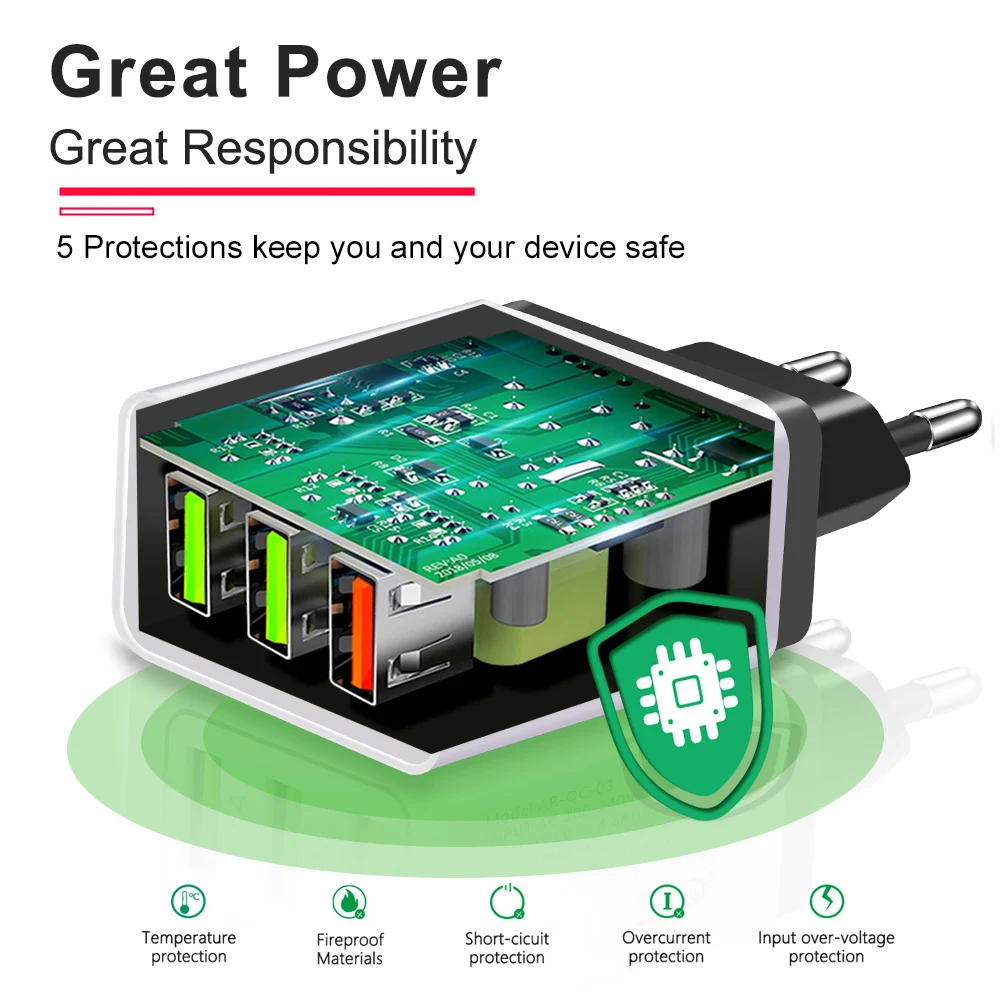 | Product name: | Cheaper QC3.0 3A fast charge 3 USB port wall charger phone USB adapter; | Place of Origin: | Guangdong China; |